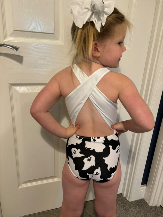 Ashleigh (Eliza) We love Halloween in our house so we obviously had to have a Halloween leotard 😍 this one is absolutely stunning and the cross back is a great feature. Lots of compliments and lots of little ghostie leotards running around our dance school ✨️👻