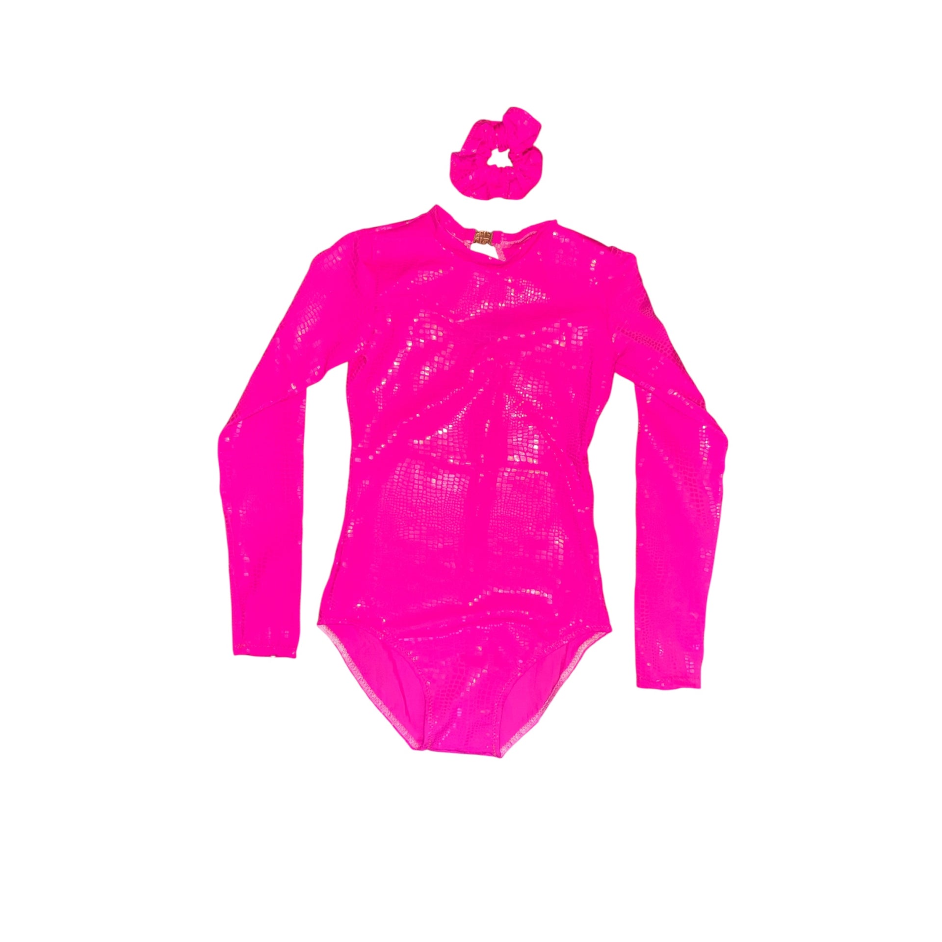 - Also available in a long sleeve leotard with keyhole neck with clip fastening, matching scrunchie