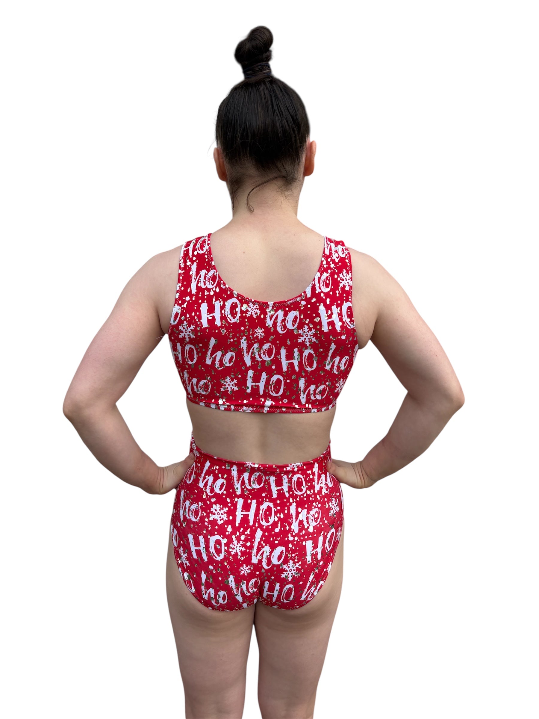 - Ho Ho Ho design stretch fabric which has a beautiful sparkle