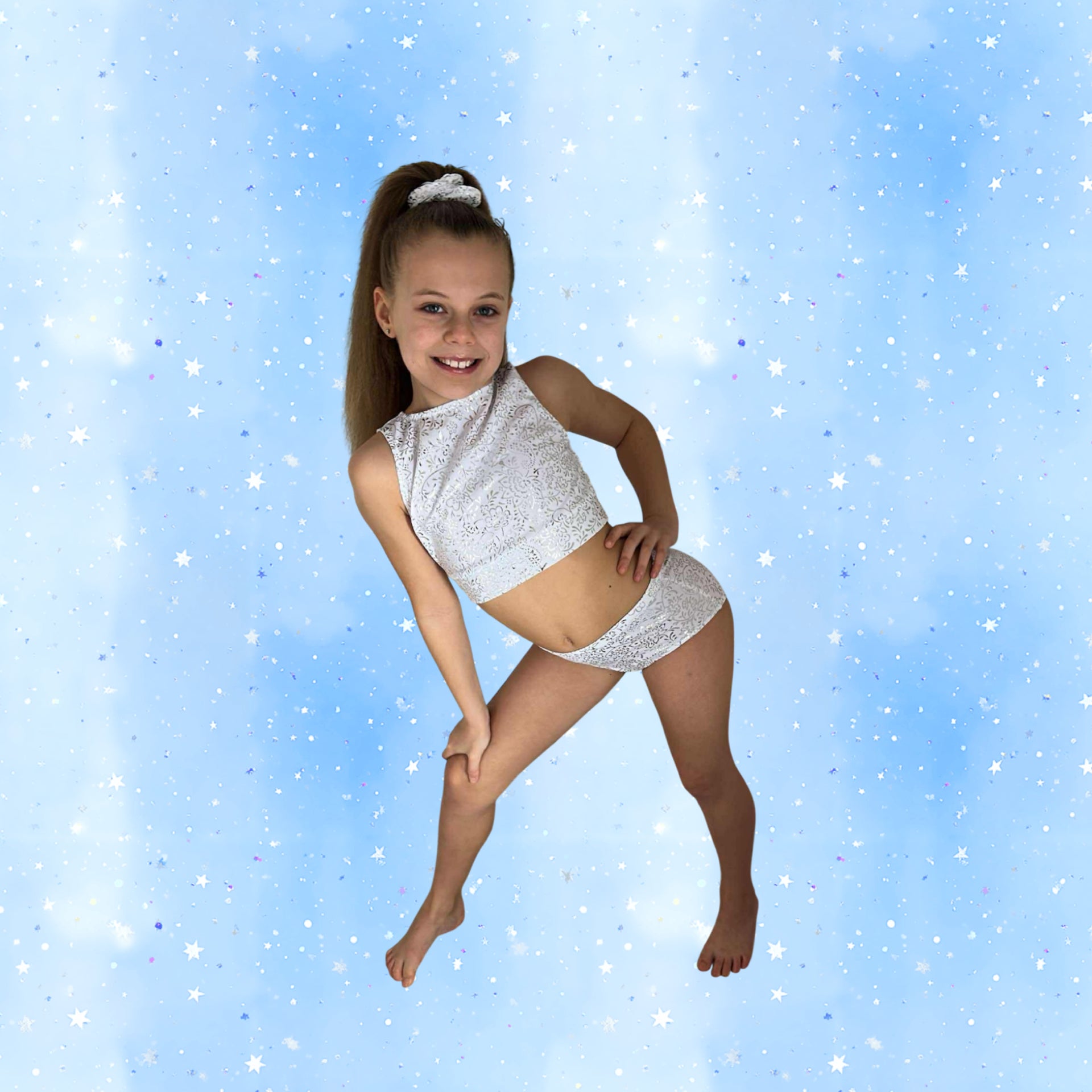 - Set includes Knix with elasticated waist, open back crop top with clip fastening, matching scrunchie