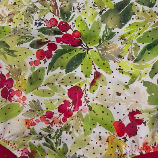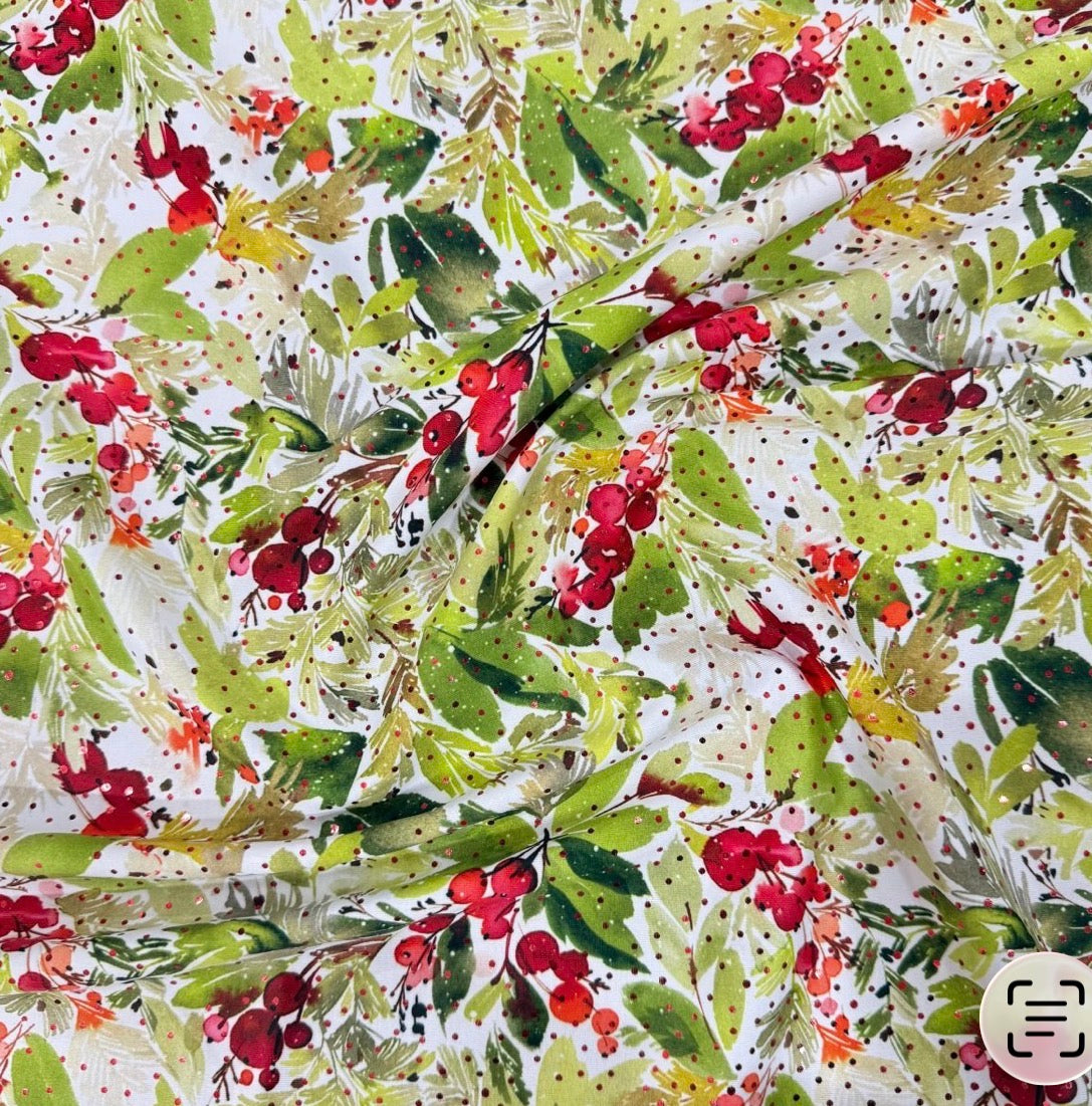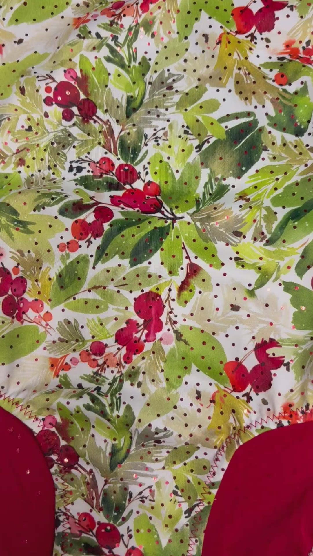 - sparkly winterberry stretch fabric matched with red sparkly dot fabric